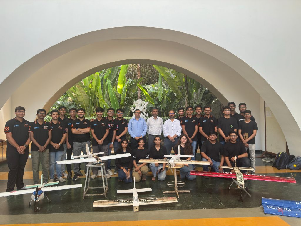 Team Arrow’s UAV stood out with a 54-inch wingspan, delivering 50 N of lift and capable of carrying a 2 kg water payload, all while maintaining a takeoff distance of under 10 feet. The aircraft generated 2.8 kg of thrust with a remarkably low 450 Watts of power consumption. Notably, the UAV successfully completed five consecutive flights – the highest among Indian teams, in adverse wind conditions, showcasing exceptional stability and aerodynamic reliability.