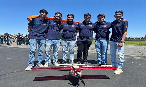 Team Arrow SAE (Rishith Vanaliya, Dhagash Patel, Malav Prajapati, Shiv Vanara, Monil Ashapuri, and Kush Mehta) representing Nirma University, secured 5th rank in the ‘Mission Score category’ at the SAE Aero Design West 2025, held at Apollo XI RC Field, California, USA from April 4-6, 2025.