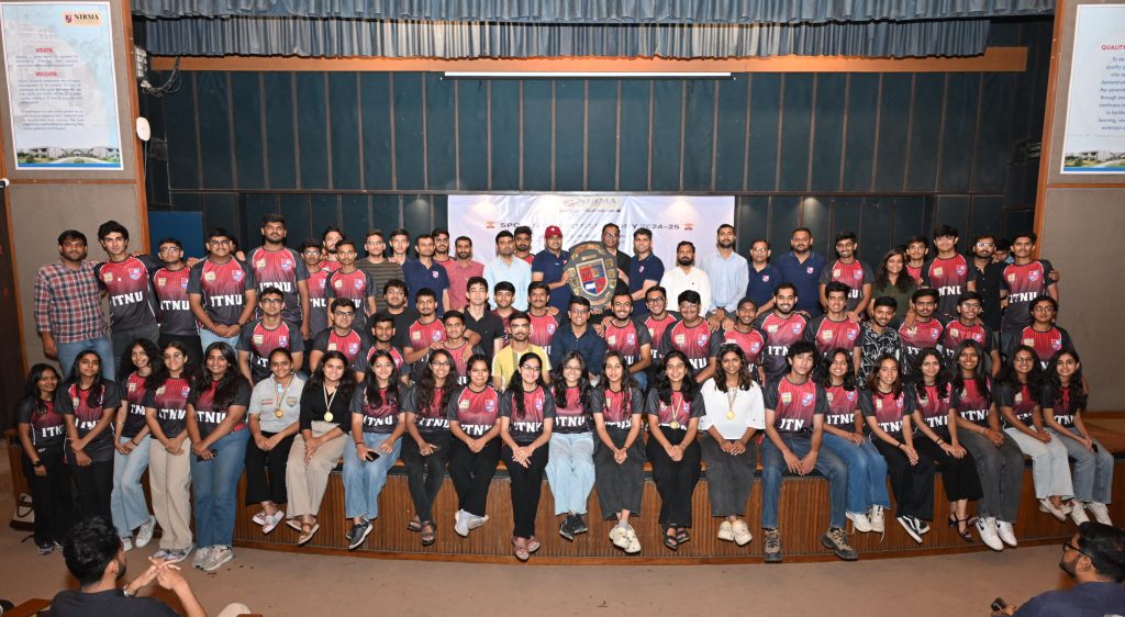 The Institute of Pharmacy, under the aegis of the Student Welfare Board, Nirma University, organised the Sports Awards Ceremony 2024-25 on April 18, 2025. The event aimed to felicitate students, faculty, and staff members who delivered exceptional performances and secured first or second positions in various inter-institutional team and individual sports competitions during the academic year 2024-25.